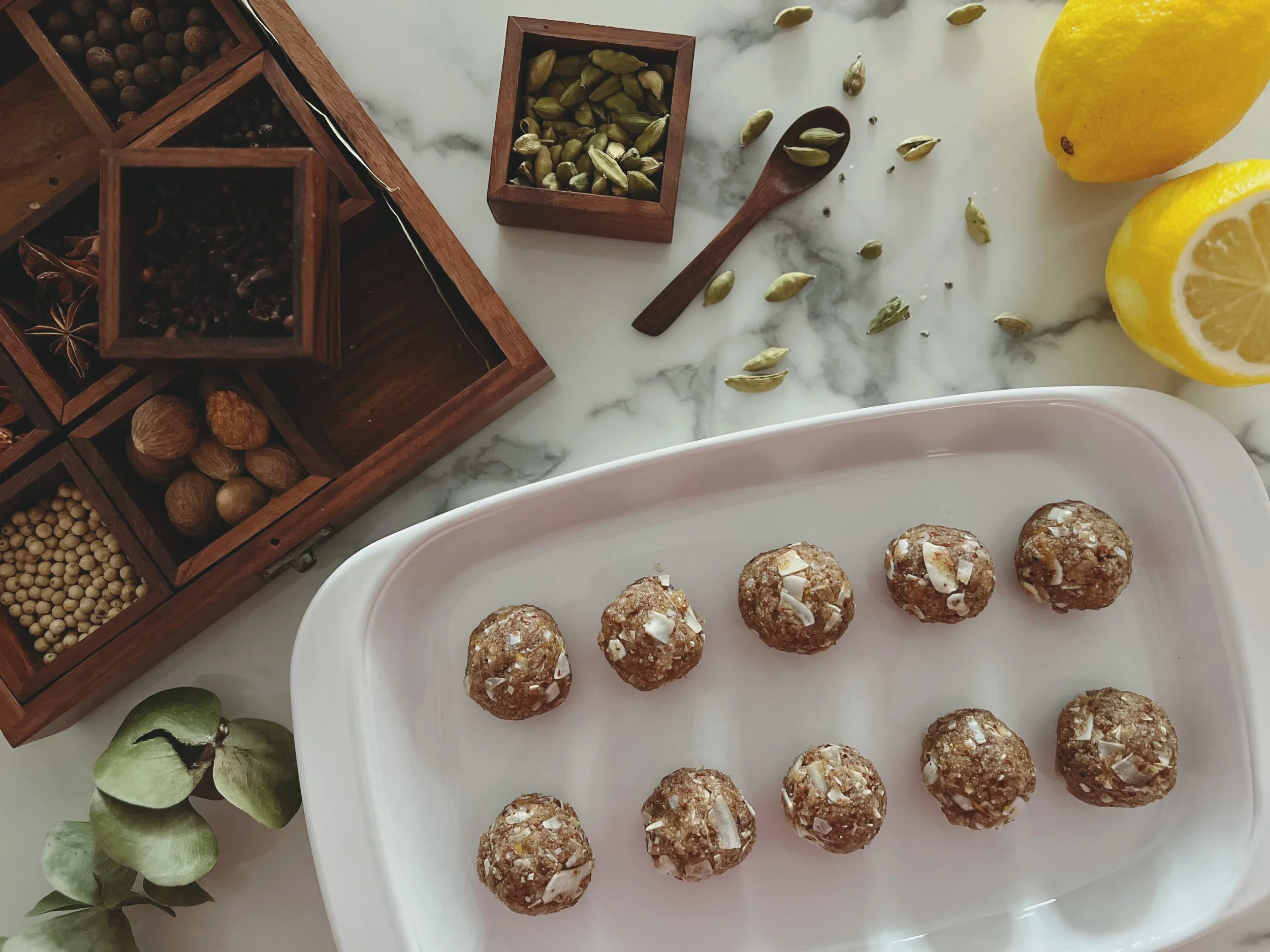 3- Scoop generously using a 1 tbsp measuring spoon then roll between lightly oiled hands into a ball shape